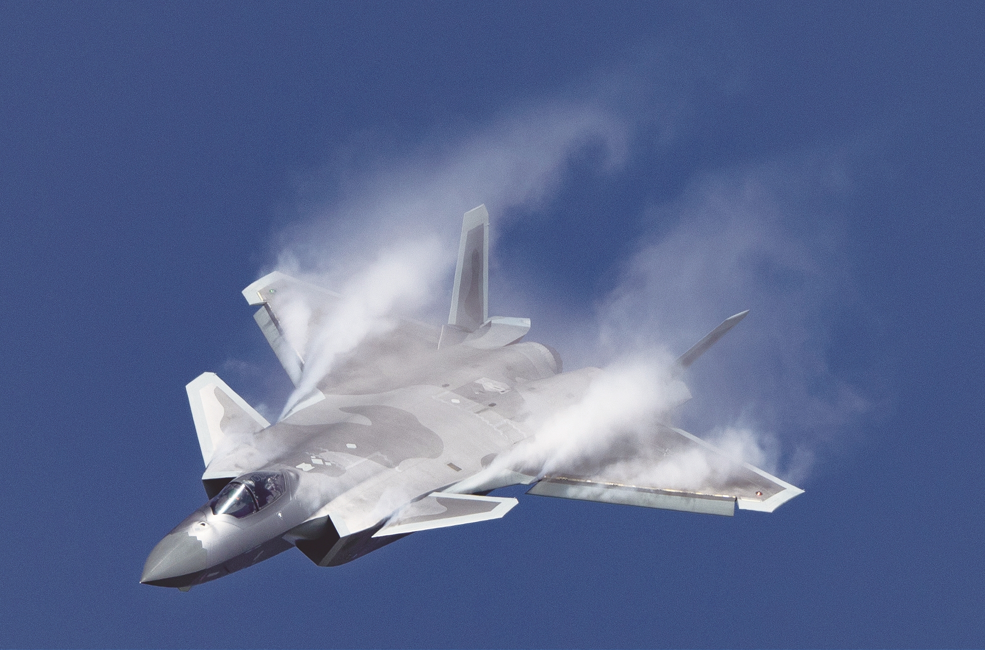 别小看这对小翅膀,在大角度机动时,它们产生的涡流与主翼涡流高效耦合,极大提升战机升力,这就好比主翼安装了涡轮增压器,让歼-20在近距格斗中能更快地调整姿态,抢占先机。